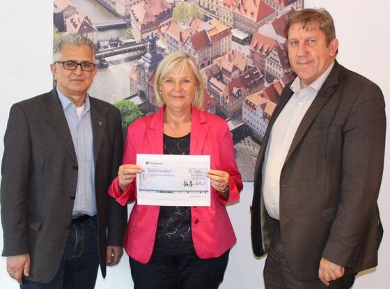 Keine Gewalt gegen Frauen! Für die Unterstützung dieses guten Zwecks überreichten die beiden SPD-Kreisvorsitzenden Felix Holland (Bamberg-Stadt) und Andreas Schwarz (Bamberg-Land) 200 Euro an Frau Weidig vom Bamberger Frauenhaus. Frau Weidig bedankte sich herzlich, denn die Finanzierung des Frauenhauses ist auch abhängig von Spendengeldern.